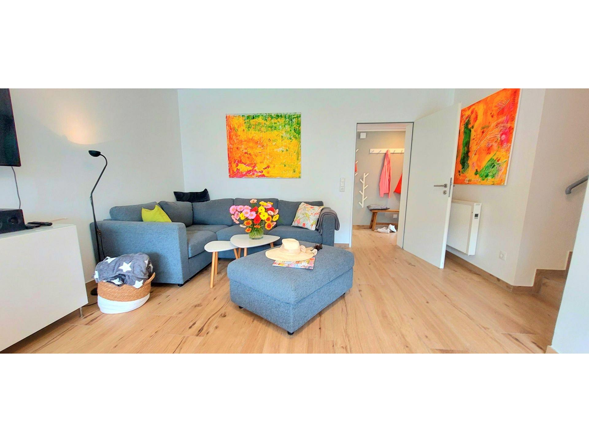 Im Erdgeschoss des Hauses empfängt sie ein heller Wohn-Essbereich mit anliegender Südterrasse und einem ca. 220 qm großen Garten, der bei schönem Wetter als zusätzlicher Raum genutzt werden kann. Eine räumlich abgetrennte, voll ausgestattete Küche mit Geschirrspülmaschine, Kühlschrank, Tiefkühlfach, Mikrowelle, Kaffeemaschine, Milchaufschäumer, Wasserkocher u.v.m. sowie einem Gäste-WC mit Dusche und Toilette.
